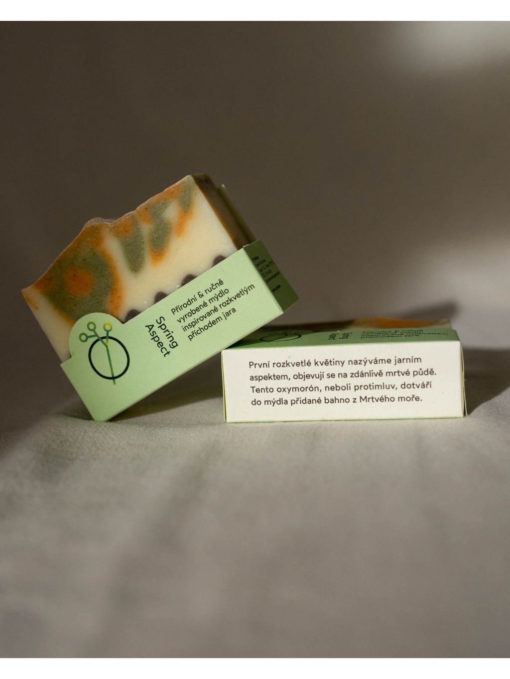 První rozkvetlé květiny nazýváme jarním aspektem, objevují se na zdánlivě mrtvé půdě. Tento oxymorón, neboli protimluv, dotváří do mýdla přidané bahno z Mrtvého moře.