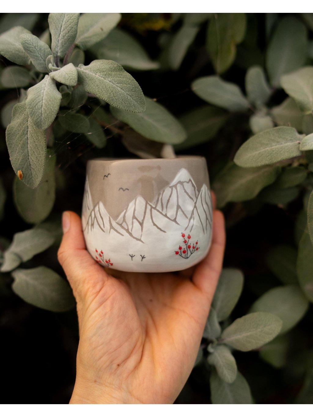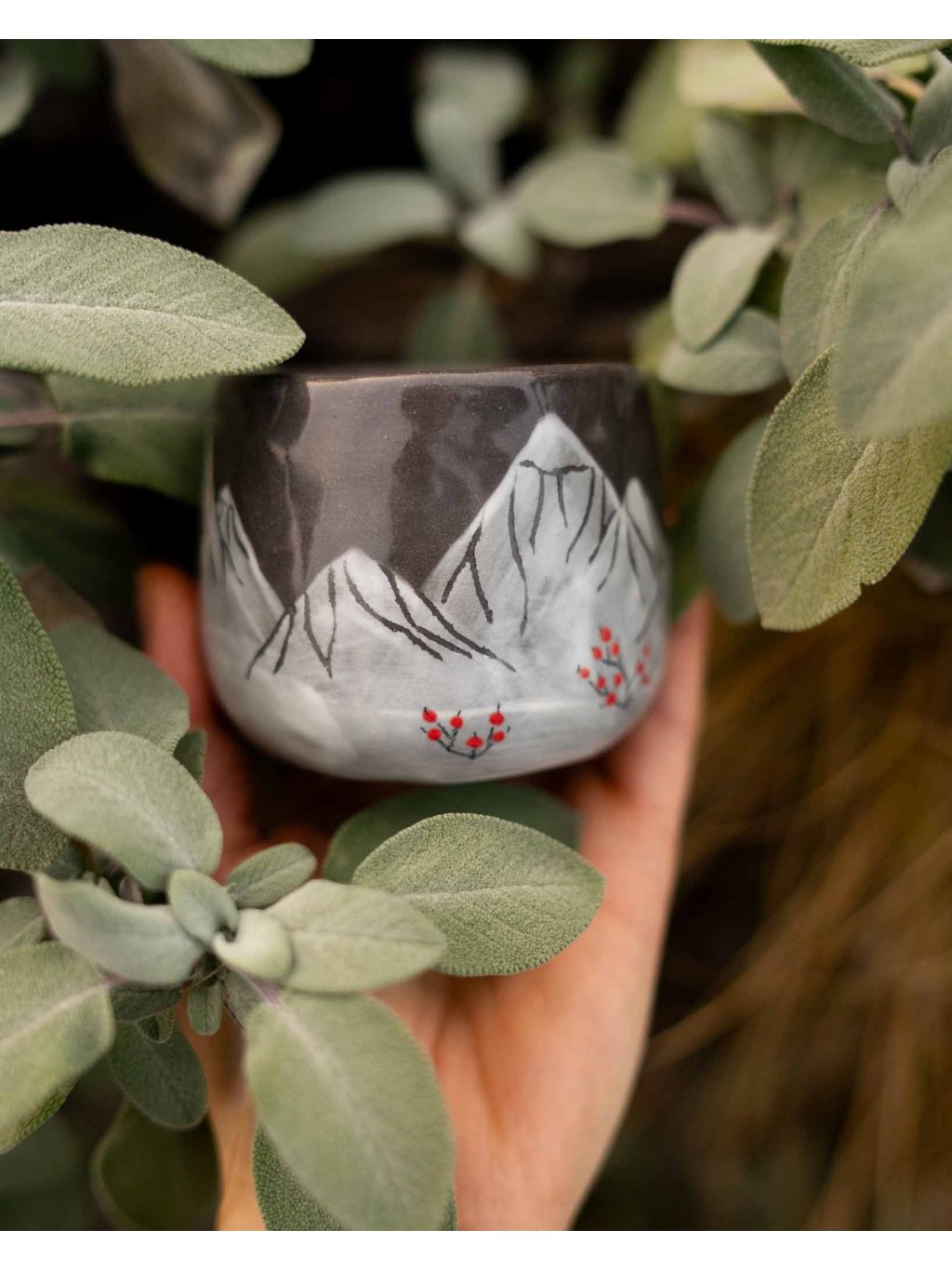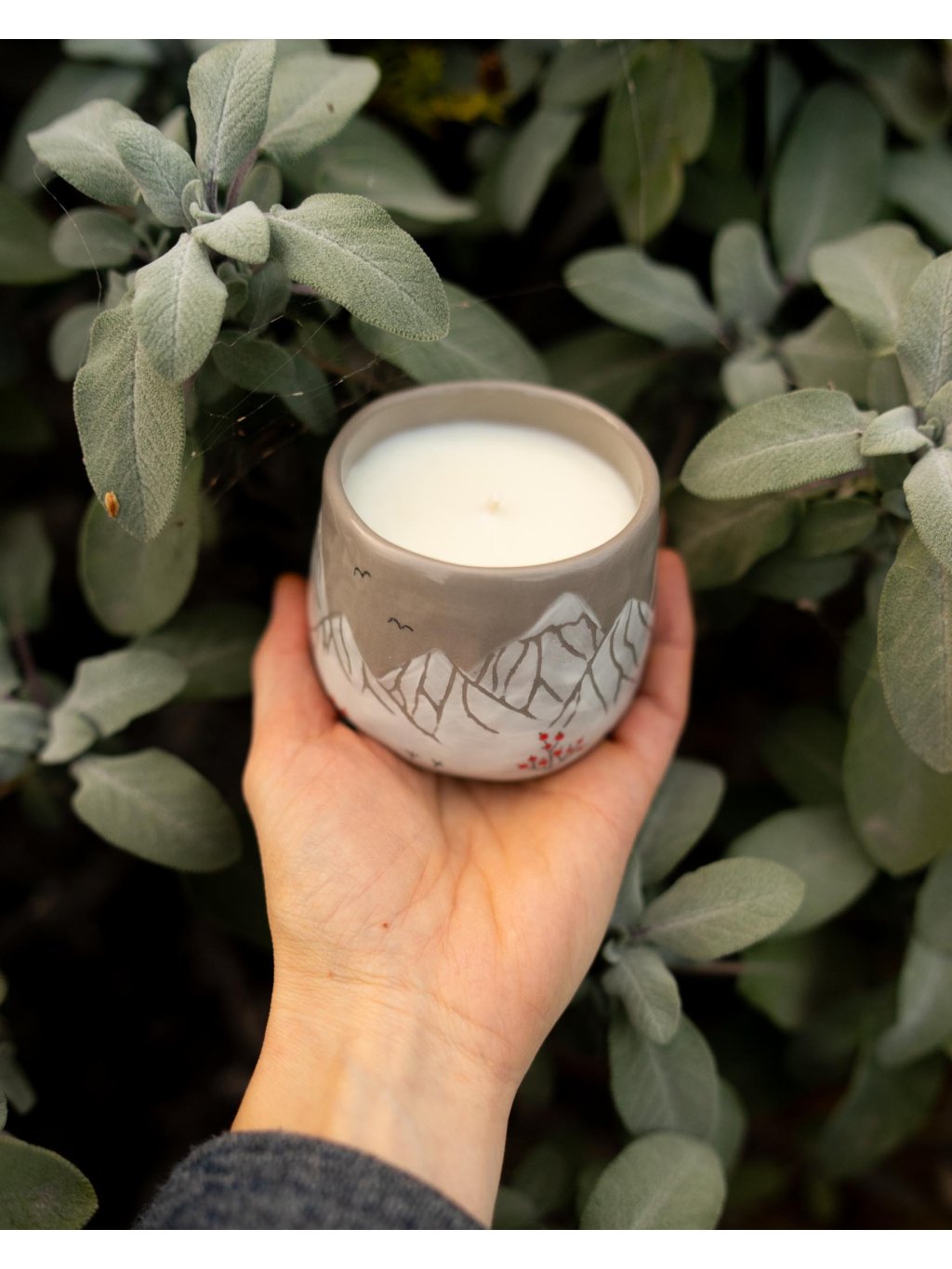 - Sojová svíčka v keramickém mačkaném kalíšku s kresbou