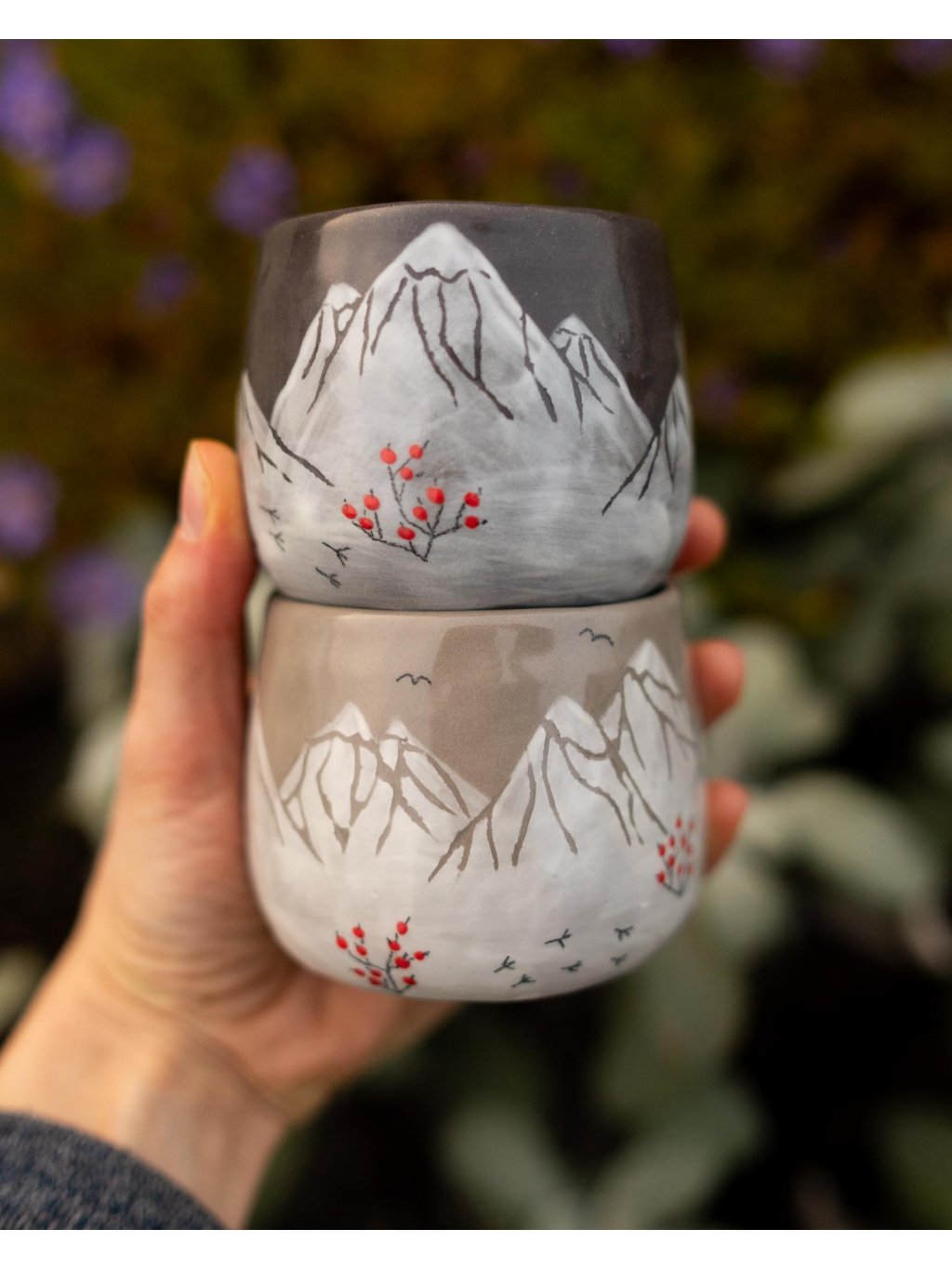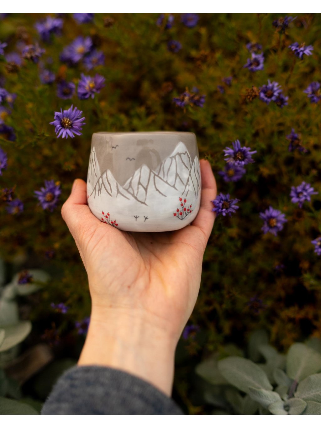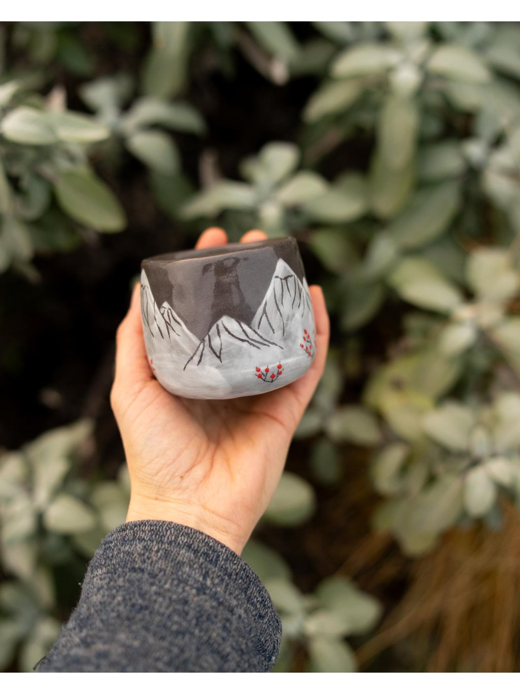 - Sojová svíčka v keramickém mačkaném kalíšku s kresbou