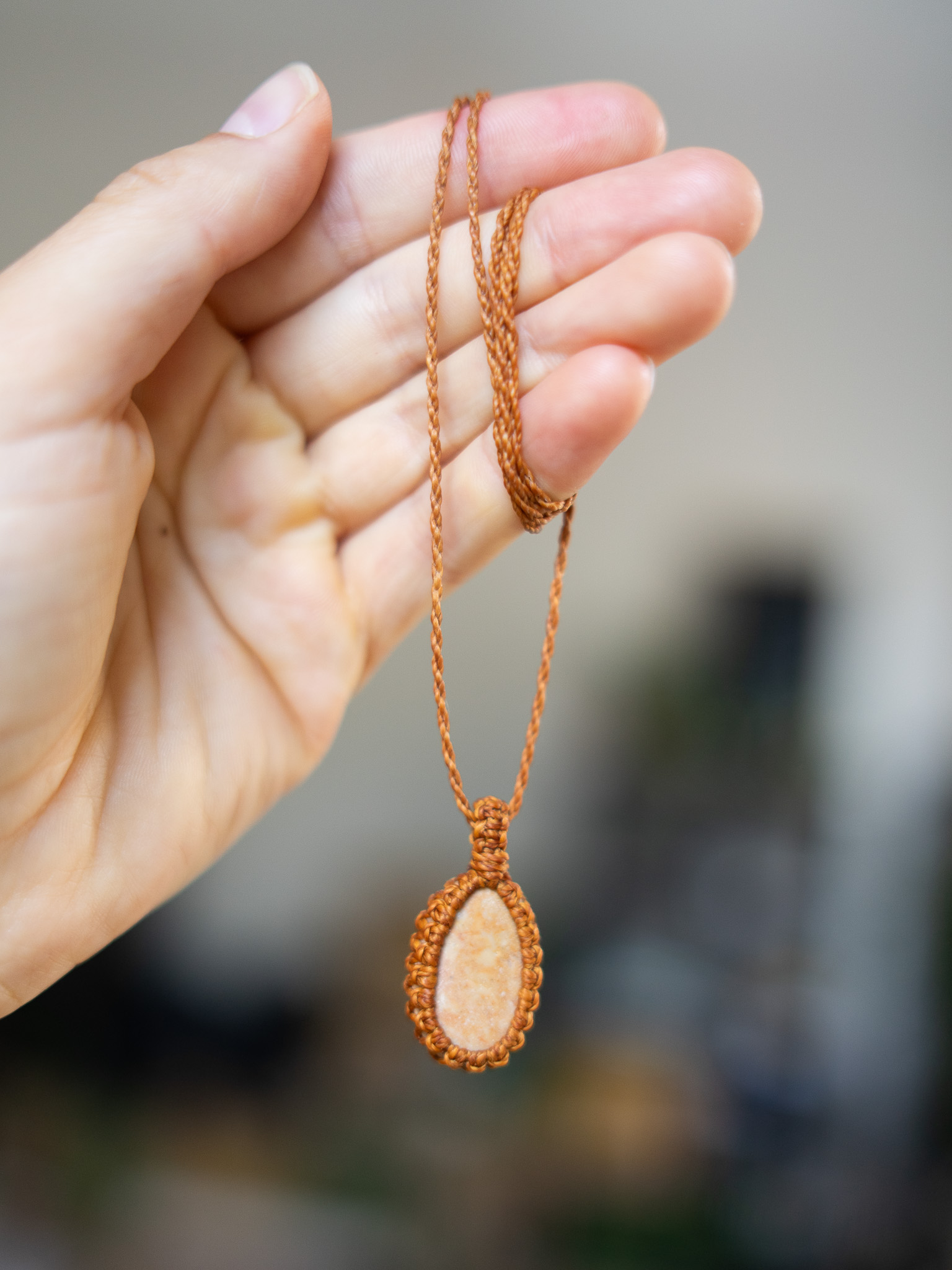 Moře na krk, nekonečné pláže, hukot vln a slunce, to vše je pečlivě polapeno v síti uzlíků mých micromacrame šperků. Drhané náhrdelníky z řady „Simple“ jsou unisex a tak mohou rozzářit den opravdu každému. Tento konkrétní je s jedinečným kropenatým kamínkem.