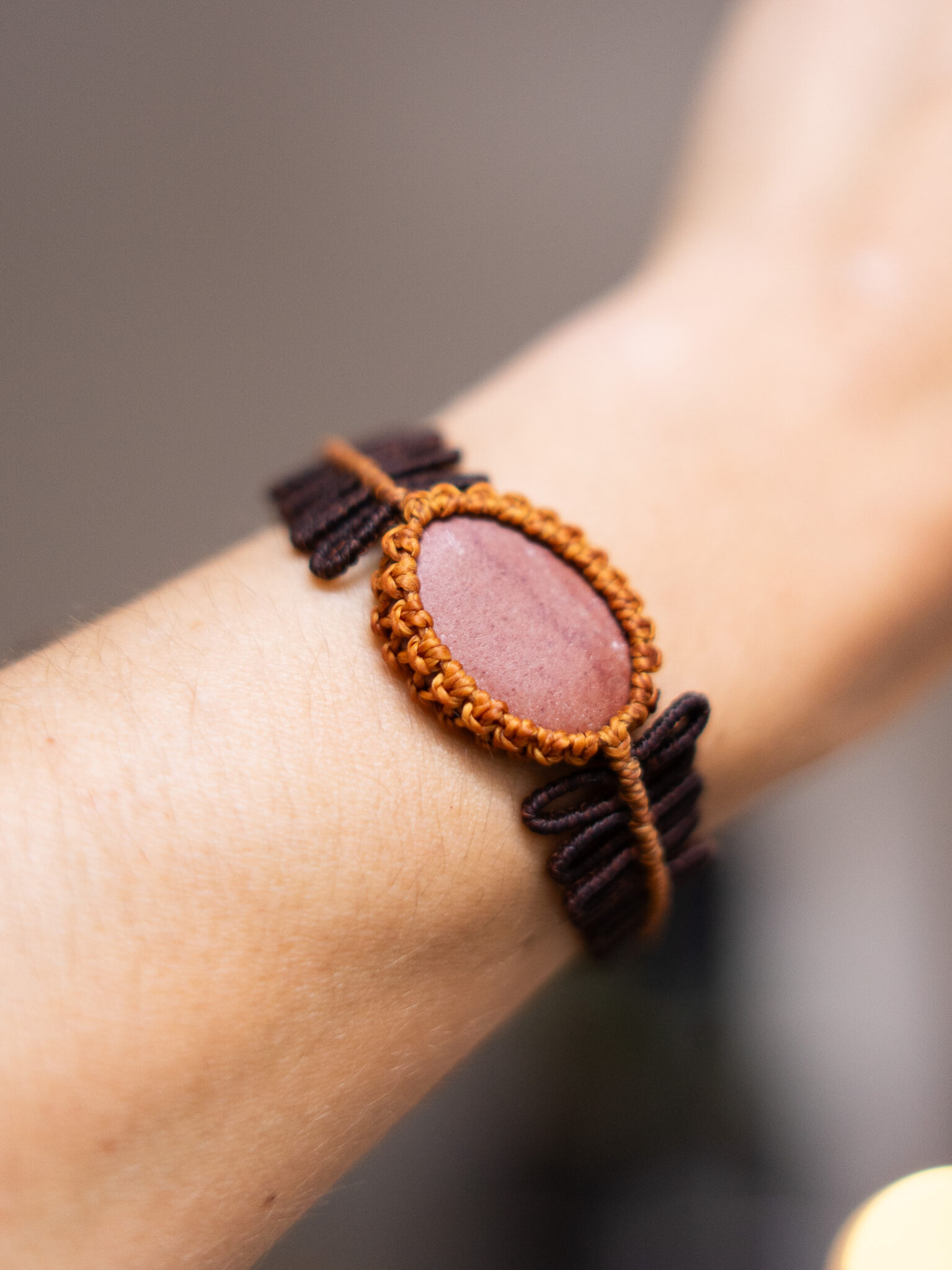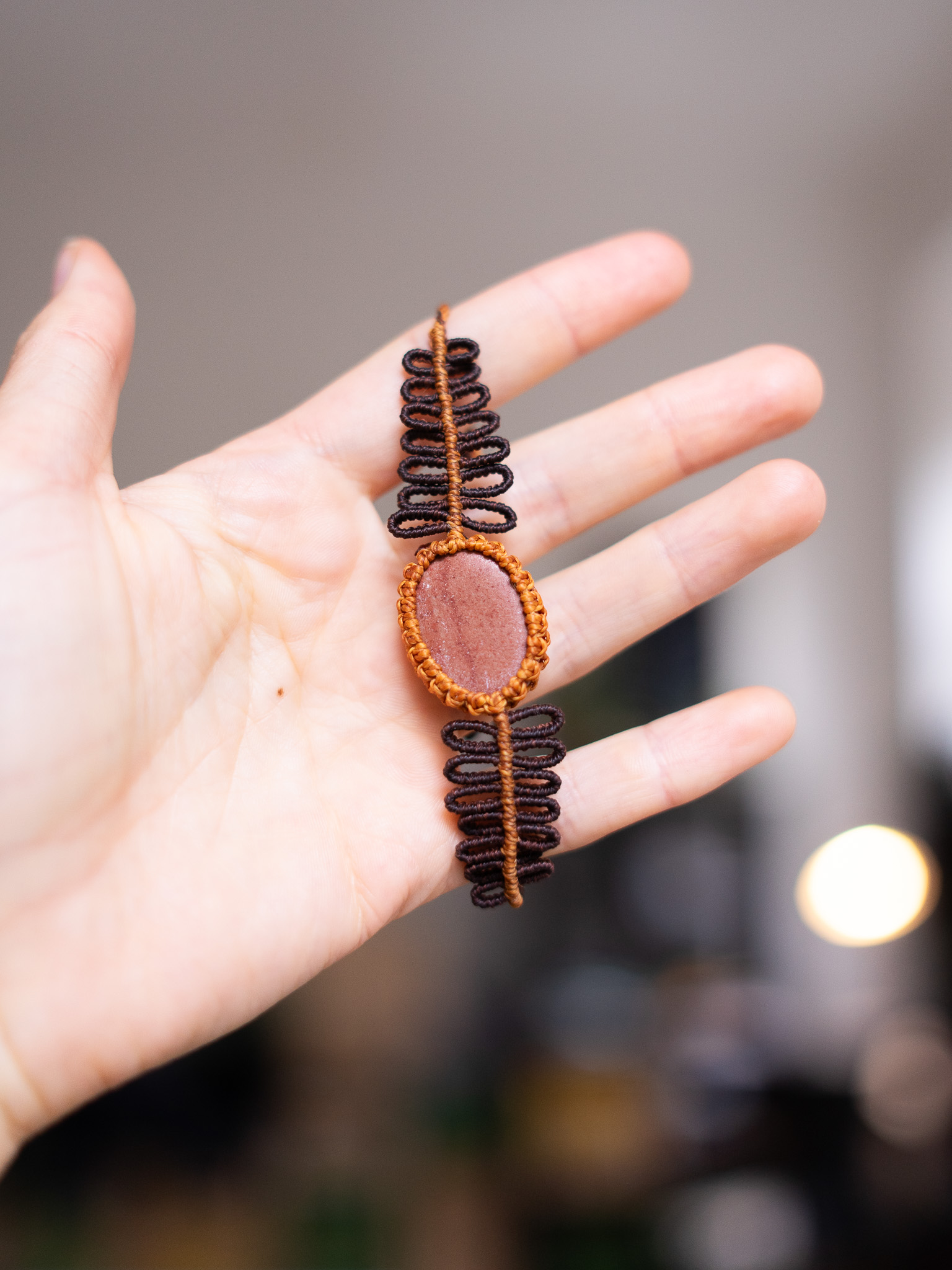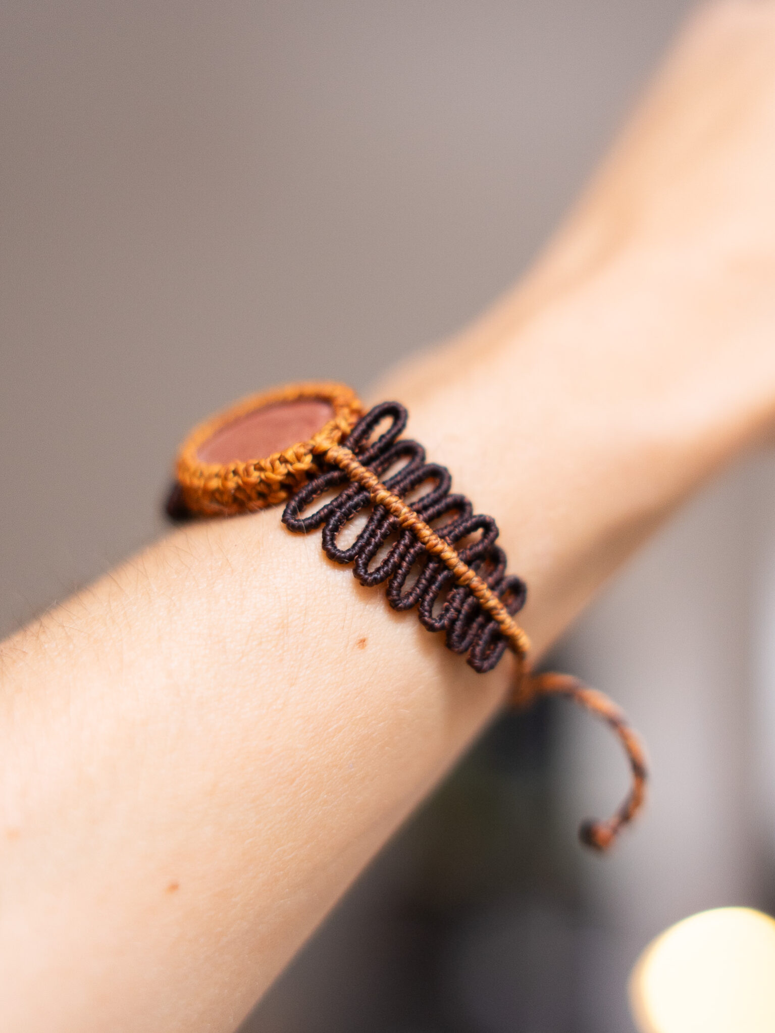 Moře kolem zápěstí, nekonečné pláže, hukot vln a slunce, to vše je pečlivě polapeno v síti uzlíků mých micromacrame šperků. Drhaný náramek se španělským kamínkem je unikátním šperkem s příběhem.